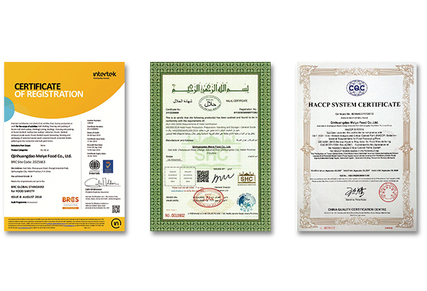 美燁所用設(shè)備設(shè)施均按出口食品生產(chǎn)企業(yè)注冊衛(wèi)生規(guī)范要求設(shè)計(jì)安裝,本公司已經(jīng)通過美國HACCP、英國BRC、清真HALAL認(rèn)證,并在美國FDA、歐盟、俄羅斯等注冊備案,現(xiàn)...